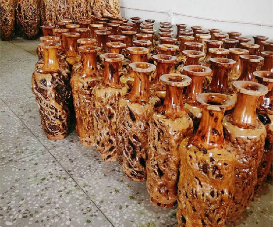 2021-07-19 棗木(mù)根雕花(huā)瓶上(shàng)漆方法1、蟲膠清漆法。即用(yòng)蟲膠'φ片與酒精1:4~6的(de)比例稀釋,待完全融化(huà)後,用(yòng)排筆(bǐΩσ)刷塗于根雕作(zuò)品上(shàng),一(yī)般刷5遍至6遍,∞>每遍間(jiān)隔10~0分(fēn)鐘(zhōng)。